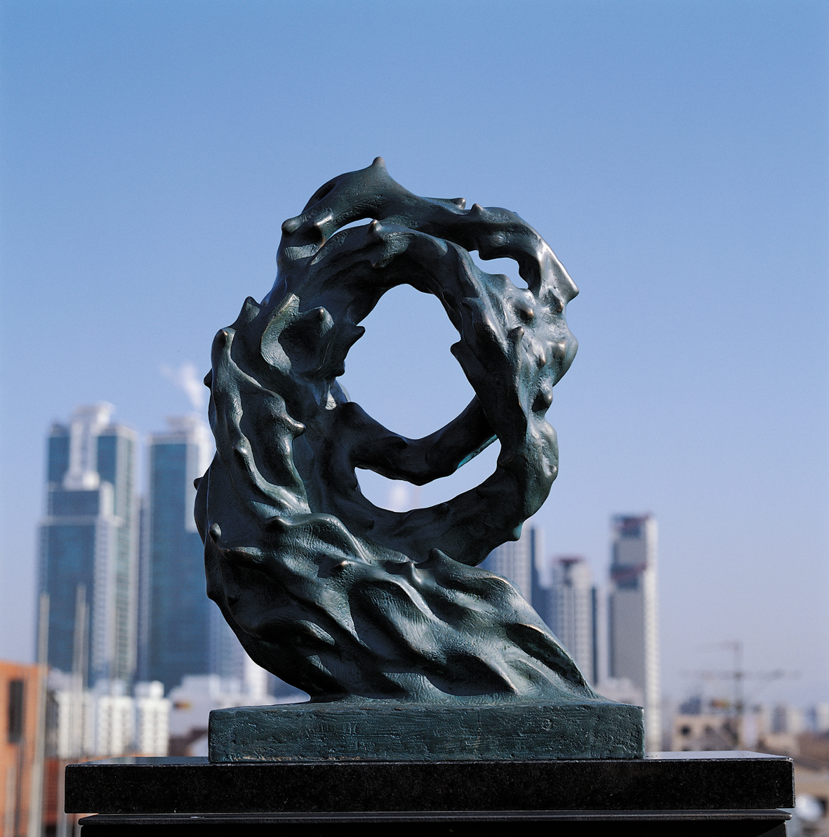 인체, 특히 여체가 그것이다. 그것이 반드시 형상적인 것이 아니라 때로는 은유적인 것이라 치더라도 그 모티브가 추상화되어 풍기는 브론즈 특유의 투명한 촉감은 차라리 육감적이기까지 하다. 뿐만 아니라 황인철의 조형적 기본특성으로서의 시작도 끝도 없는 매킴없는 율동적 곡선의 묘미는 조각가 황인철의 본질적 특성으로서 앞으로도 길이 간직되어야 할 것으로 여겨진다.
