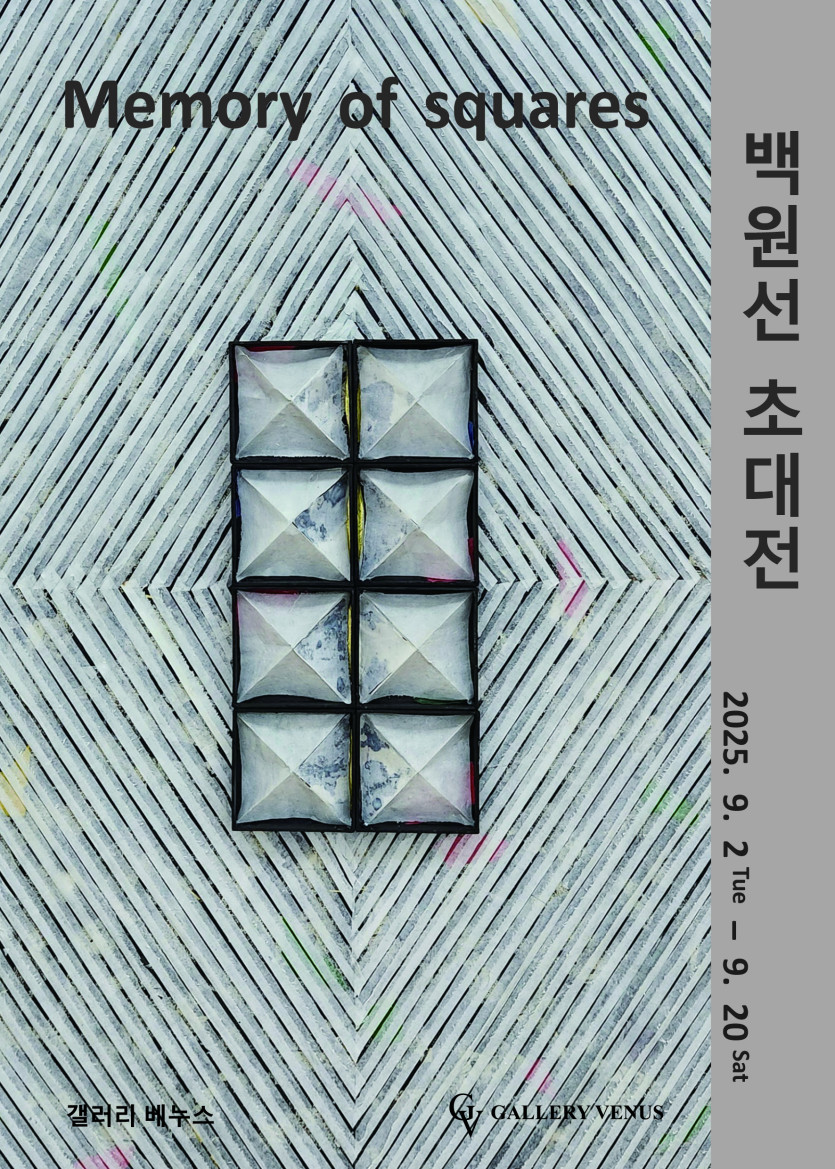 갤러리 베누스에서 준비한 이번 「Memory of squares」 전시는 백원선 작가가 오랜 시간에 걸쳐 축적해 온 조형 실험의 결정체라 할 수 있습니다. 동양과 서양의 조우, 평면과 입체의 결합, 반복된 사각의 구조 속에 담긴 무한한 변주와 사유를 직접 마주할 수 있는 특별한 자리로, 관람객들에게 회화의 또 다른 차원을 경험하게 할 것입니다.